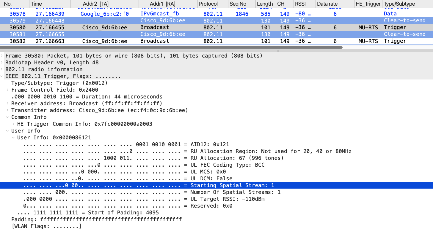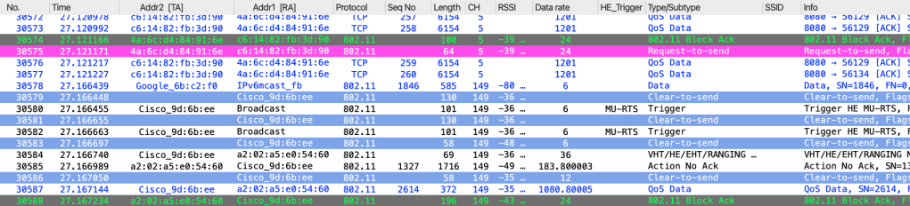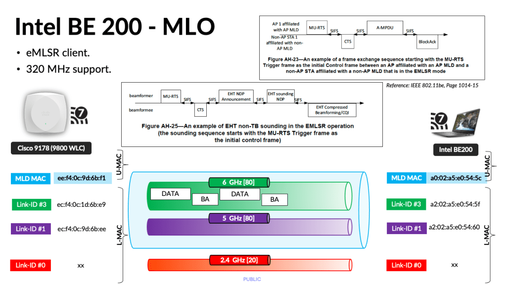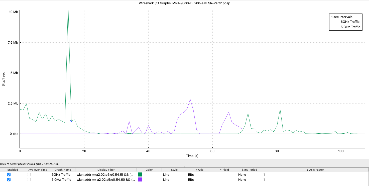 The access points are configured with 160 MHz channels in the 6 GHz (with 17dBm Tx power) band and 80 MHz channels in the 5 GHz band (with 14dBm Tx power). Theoretically, this configuration should provide a combined data rate of approximately 4.2 Gbps between the UDB switch and the Wi‑Fi 7 APs (based on 2.8 Gbps + 1.4 Gbps, as referenced from mcsindex.net).