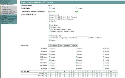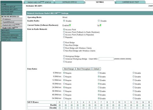 Step 2 : Go to the GUI of the AP & select the appropriate radio interface (I would assume you would know how to do this on GUI, but not in CLI). Default settings should looks like this.
