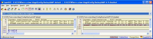 First you need to have config comparison software (I found ExamDiff software which is freely available http://www.prestosoft.com/ps.asp?page=edp_examdiff#download)