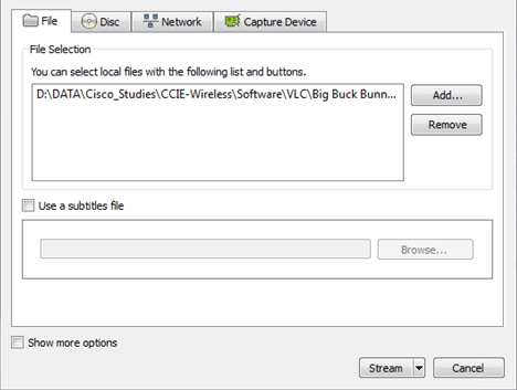 Select your video file by clicking “Add” button & then click “Stream” button in the bottom.