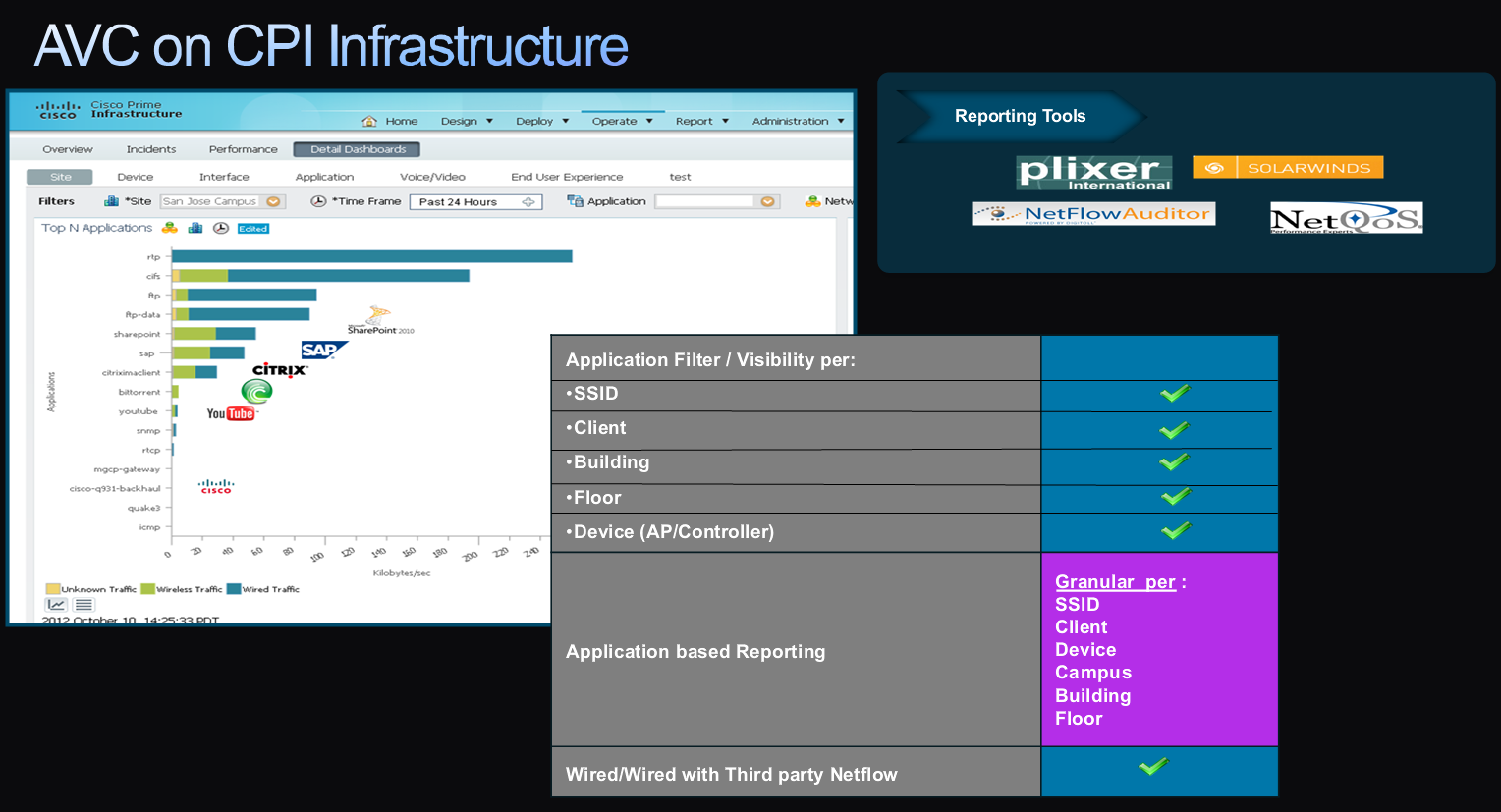 In conclusion, Currently Plixer Scrutinizer (out of Fluke, Solarwinds & Plixer) is the only 3rd party netflow tool supporting Cisco WLC netflow exports (Cisco Prime is the cisco mgmt platform which support this). You need to have that tool to get the required visibility on your wireless network. I think other neflow vendor’s will follow Scruinizer’s path & release software version of their product that can interpret Cisco WLC flow format.