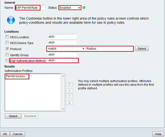 Note that I have not filtered any specific EAP types as I need to user multiple EAP types in this example. Here are the EAP Authentication options available here in ACS 5.2