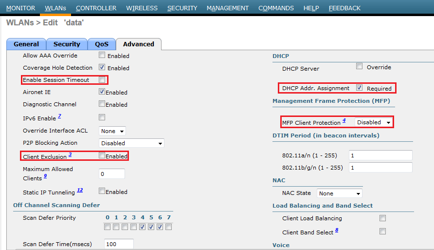 Under Advanced configuration of WLAN there are few features changed from the default configuration. I have configured this based on the following cisco  configuration document. I do not think those are mandatory, but just configured as guided.
