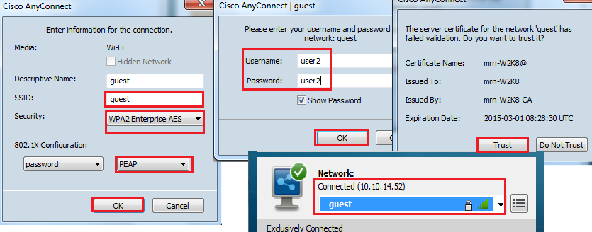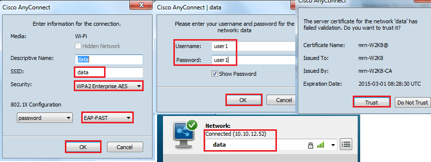 Now you are ready to test the connectivity using AnyConnect Client. In the given Cisco document they have used Microsoft client with specific profile configurations. I have used Cisco Anyconnect as it would be the client used in CCIE wireless lab exam.PEAP-FAST-14