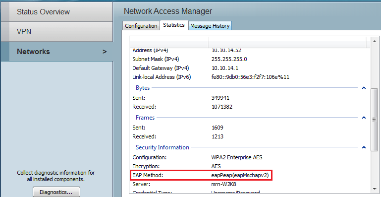 Once you look at statistics section of this AnyConnect client you can verify the details.PEAP-FAST-15