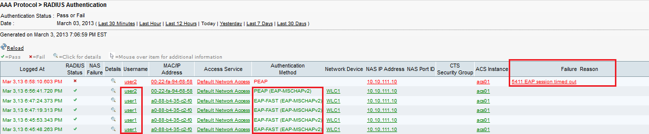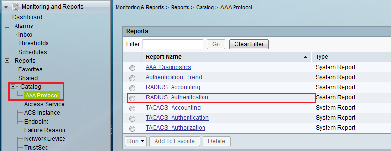 Finally you can check ACS statistics as well. Normally this would help if your client cannot associate to WLAN & if you wanted to know why is that.You can go to this report from “Monitoring & Reports > Launch Monitoring & Report Viewer > Catalog > AAA Protocol” section as shown in the below.