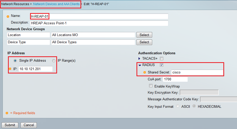 H-REAP to work with External RADIUS server in Local Authentication mode you have to configure H-REAP to communicate with external RADIUS. We have used ACS as external RADIUS server.