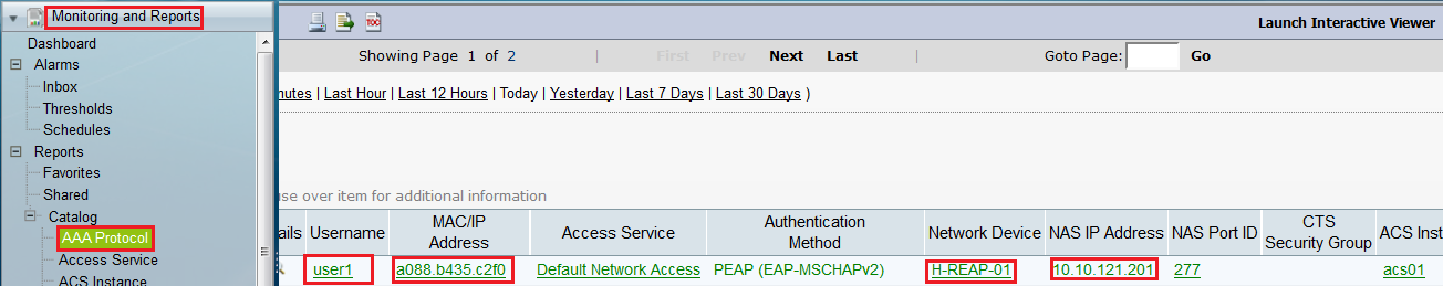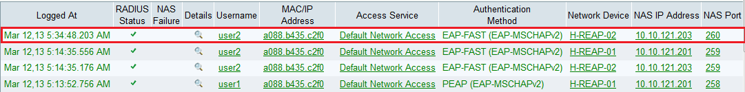 I could not see a option to set secret key. I think by default it use the key set between WLC & ACS. If you want to override it you have to use the CLI command “config ap h-REAP radius auth set primary 192.168.100.2 1812 cisco H-REAP-01″. Here is the ACS authentication logs when user is connected to H-REAP