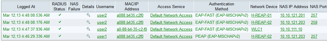 You can verify client connectivity in this situation by using AnyConnect client. Here is the ACS authentication log this time.HREAP-ACS-09