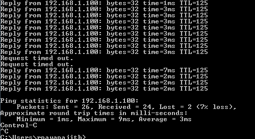 Now you can check roaming of a client between H-REAP-01 & H-REAP-02. I would simulated this by turn off AP where client associated & force them to move to next AP (sorts of roaming). I use ICMP ping to see how may packets drops when moving HREAP-01 to HREAP-02. Here is the output & you can see there are 2 packet drops.HREAP-ACS-10
