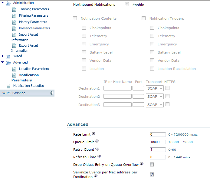 If you want to configure notifications to send to 3rd party system (Northbound Notifications) you can do this under Notification Parameters in Advanced Settings of CAS.