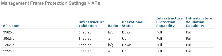 config ap mfp infrastructure validation {enable|disable} Cisco_AP_Name