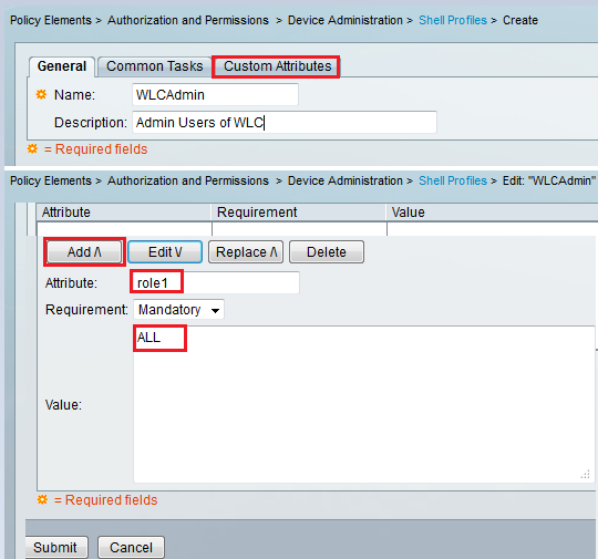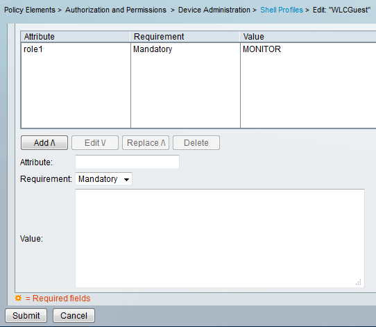 Then go to Policy Element to define 3 different policy for this. Here is how you create it ( Policy Elements -> Authorization & Permissions -> Device Administration -> Shell Profile” . Once you give a Name & Description under the General tab, you have to go to Custom Attributes to specify the roles.