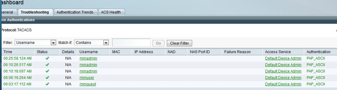 Then change the Priority order for management user ( in Security -> Priority Order -> Management User Section). Ensure that TACACS+ is check first & then local.