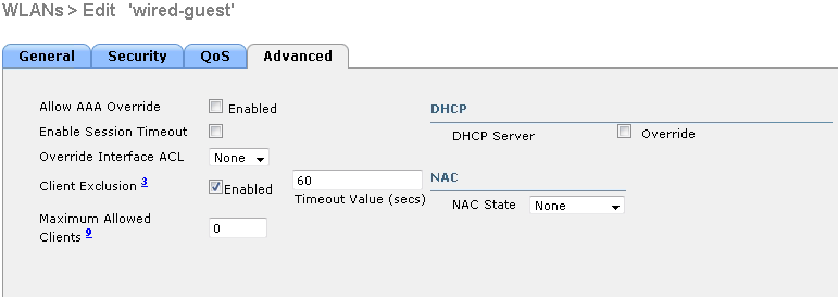 config interface create vlan49 49 config interface guest-lan vlan49 enable config interface vlan vlan49 49 config guest-lan create 1 wired-guest config guest-lan ingress-interface 1 vlan49 config guest-lan interface 1 management config guest-lan security web-auth disable 1 config guest-lan security web-passthrough email-input enable 1 config guest-lan security web-passthrough enable 1 config guest-lan exclusion-timeout 1 60 config guest-lan enable 1