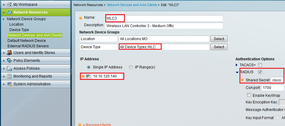 First you need to add WLC in to your ACS as an AAA device. Ensure shared secret configured for RADIUS option & if you have created a Device Type group or Location Group select those as well.