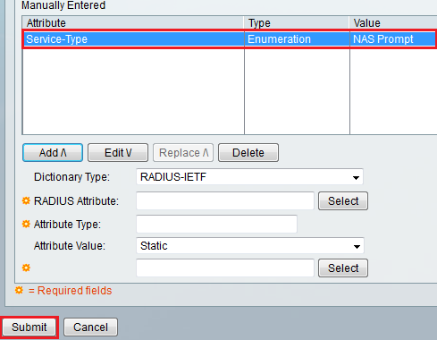 Then attribute value needs to be selected. Since this is Read-Only user attribute value should be NAS Prompt. For full admin user this value should be “Administrative” & Lobby Ambassador it should be “Callback Administrative”
