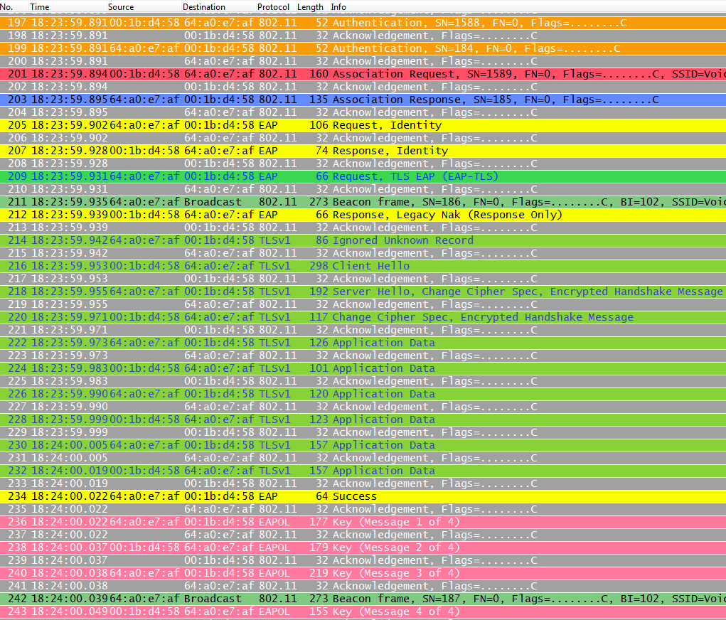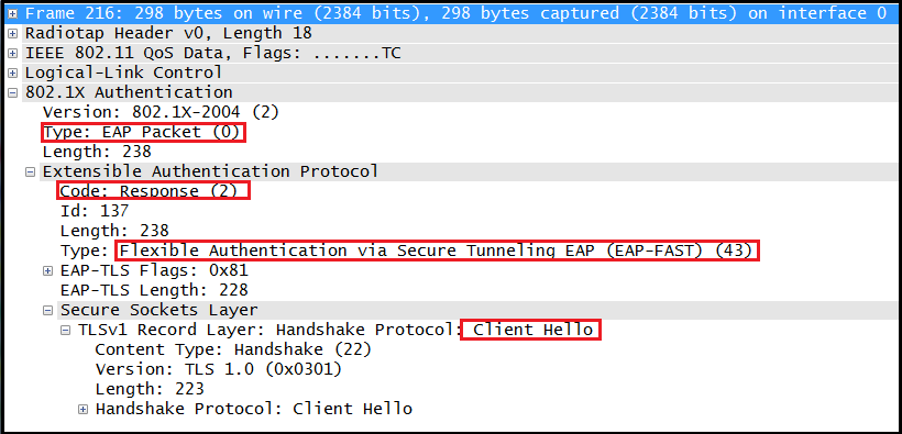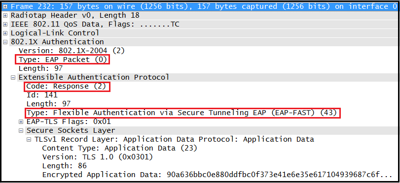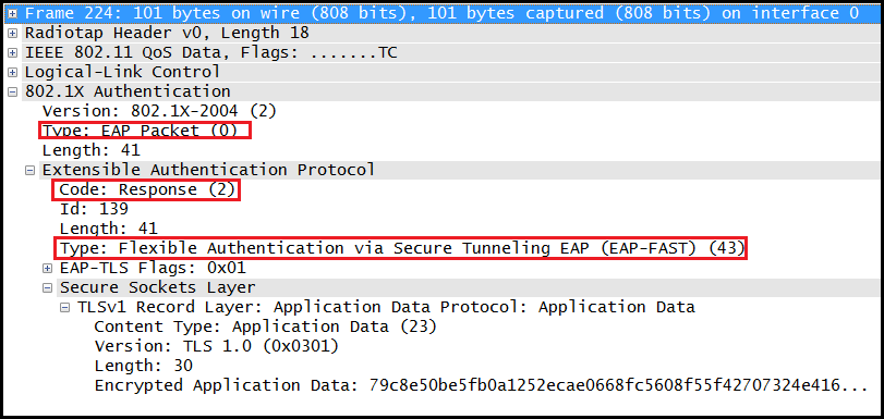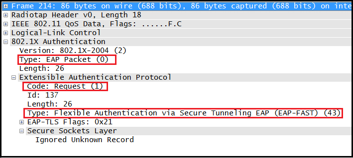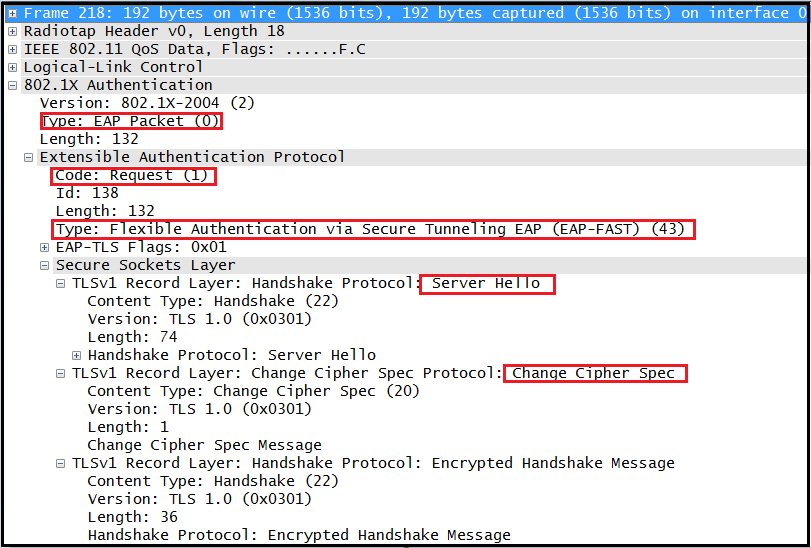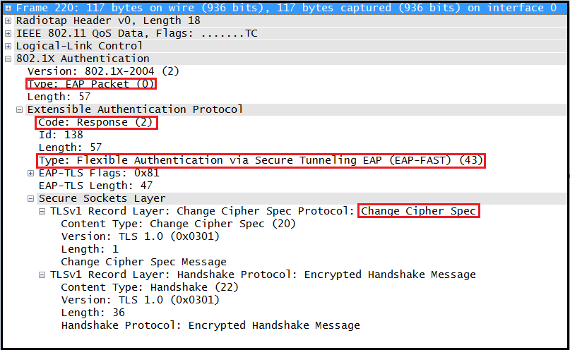 EAP-FAST-20Here is a EAP-FAST authentication frame capture (Supplicant MAC 00:1b:d4:58:e6:1a)