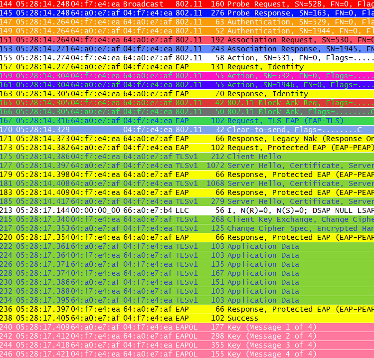 If you look it at a glance, it is very similar to the normal EAP authentication process (Open system auth -> EAP Auth -> 4-Way Handshake). But if you look deep into this packet capture you will see some interesting detail specific to 802.11r.