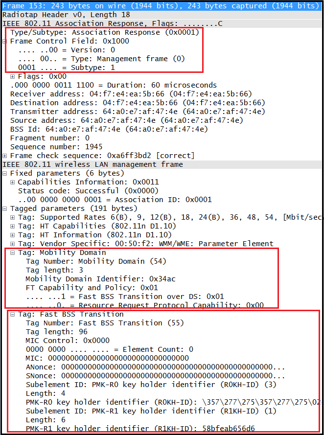 Also you can see there are two AKM suits in the RSN-IE. 00-0F-AC-1 (802.1X/EAP) & 00-0F-AC-3 (FT over 802.1X).