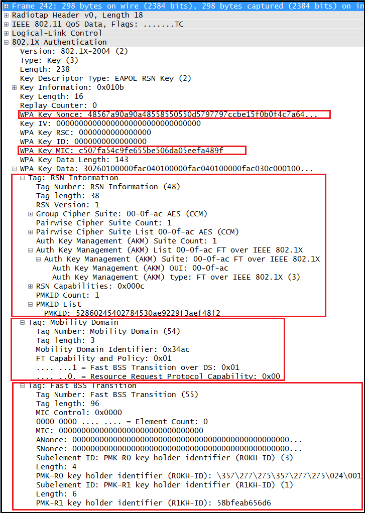 Here is the detail view of EAPOL-Key M2 which comprise of SNonce, RSNIE,MDIE & FTIE.