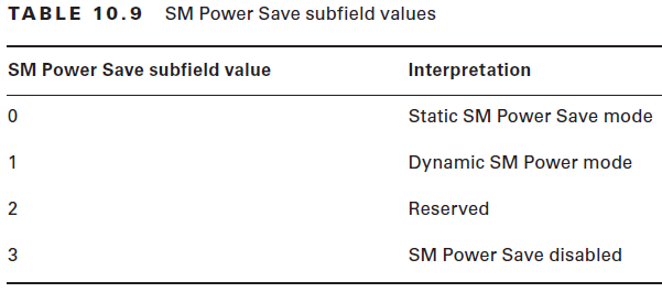 SM Power Save – to indicate STA SM Power Save capability. Here are the possbile values & their interpretation.