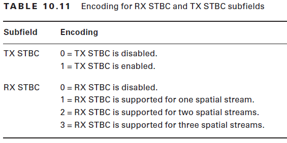 RX STBC– STA capability of receiving PPDU using STBC (Space Time Block Coding)