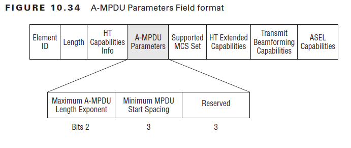 Below diagram shows the format of A-MPDU parameter field of the HT Capabilities IE.