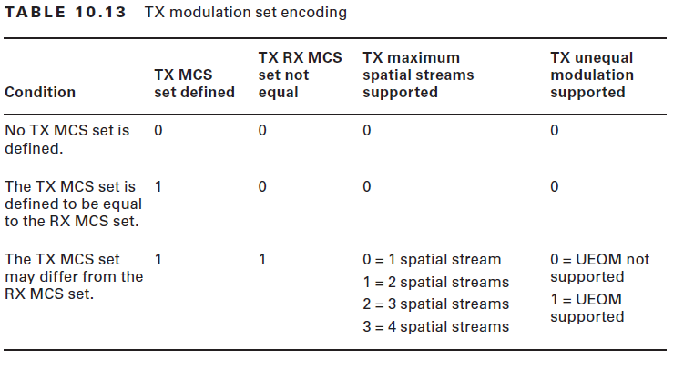 RX Highest Supported Rate – Define the highest data rate that STA support, however a STA is not required to provide that infor & may set to 0.TX Supported MCS set –