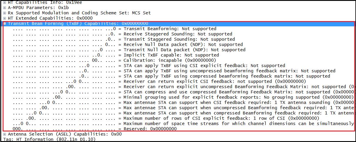 RX MCS Bitmask– has one bit for each 77 (0-76) MCSs. Above shows it support MCS0-23.