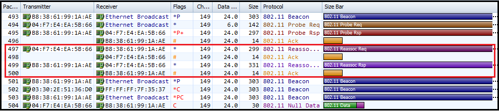 CWAP-ReAsso-00If you capture wireless frames on CH149, you should see the Reassociation Request & Response frame exchange as shown below.