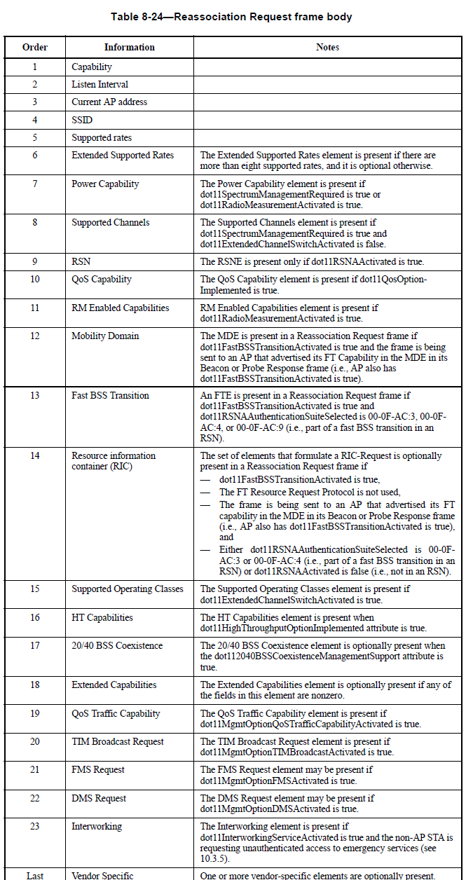 CWAP-ReAsso-05Here is the complete list of information that can be in the frame body of Reassociation Response frame. (source IEEE 802.11-2012)