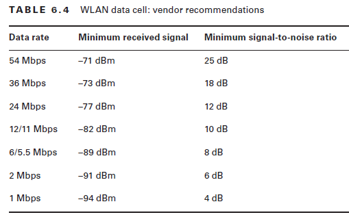 The objective of DRS is up-shifting and downshifting for rate optimization and improved performance. The algorithms used for dynamic rate switching are proprietary and are defined by radio card manufacturers. Most vendors base DRS on receive signal strength indicator (RSSI) thresholds, packet error rates, and retransmissions. Because vendors implement DRS differently, you may have two different vendor client cards at the same location, while one is communicating wit the access point at 11 Mbps and the other is communicating at 2 Mbps. Below is an sample chart showing the RSSI & SNR to achieve particular data rate for a given WLAN vendor. (page 227 – CWAP Official Study Guide)