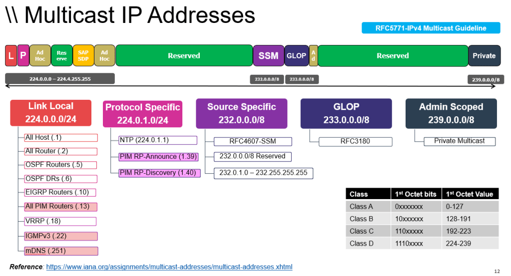 I have developed this course for someone who got basic knowledge of networking and then can go easily into wireless multicast concepts. In the initial modules we will discuss in Multicast technology in general and then discuss about IGMP & PIM protocol to give you strong foundation that you can rely when we go to wireless multicast in later modules. Here is a summary slide that talk about Multicast IP addresses.