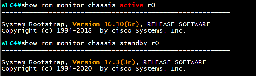 When that Unit is up & joins the HA, you can see the standby Unit got ROMMON 17.3(3r) and the Active Unit still got 16.10(6r)