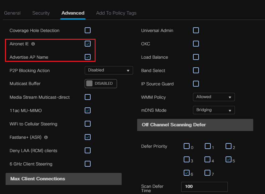 - To enable the WGB to communicate with the root AP, create a WLAN and make sure that Aironet IE is enabled under the Advanced settings.