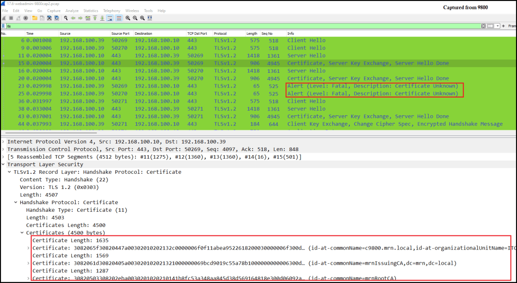Here is the PCAP taken from 9800. With 17.6.x, even I have installed WebAdmin cert, my browser gave me the warning of cert cannot be trusted.