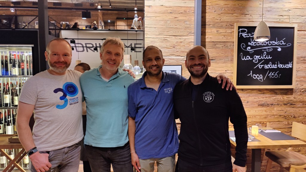 David had his friend Peter Palúch (one of the most humble people I ever met through the Cisco community, met him a couple of times during Cisco Live US) visiting him during WLPC time. I was lucky enough to catch up with him joined by fellow Cisco VIP Karsten Iwen (Karsten was at WLPC) & Martin (a WiFi colleague of David)