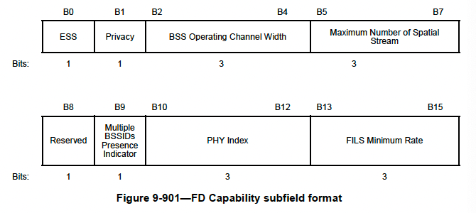 If the “Capability Presence Indicator” is set to 1 then you will see “FILS Discovery Capability” subfield with the information shown below.