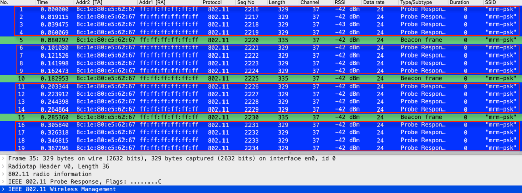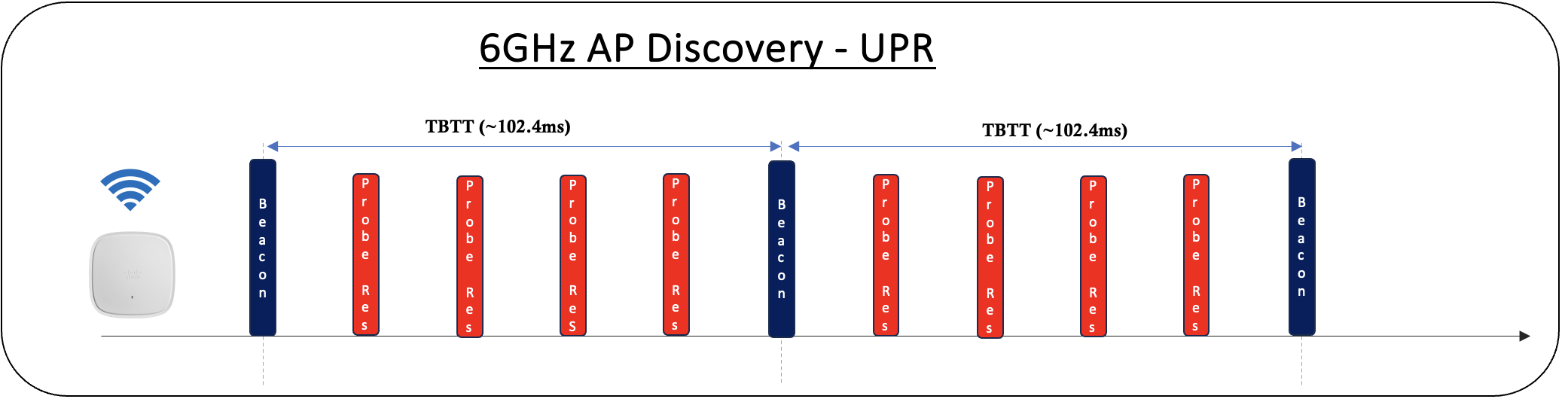 In legacy bands (2.4GHz/5.0GHz), a “Probe Response” frame is sent in response to a “Probe Request” frame. However, in 6GHz-only operation, an AP can send unsolicited Probe Response frames every 20TU (approximately 20ms) to allow STAs to discover the AP passively, rather than waiting for Beacon frames, which arrive at 100ms intervals.