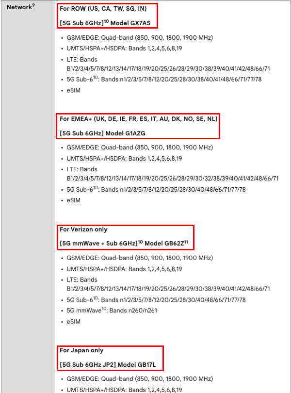 Please note that there may be different models of the product. For example, if you look at the Pixel phone hardware spec page (given above), you will find four different models (GX7AS, G1AZG, GB62Z, and GB17L) specific to Pixel 6a, each tailored to different regulations. Since my phone is for AU, I got it with FCCID AR4G1AZG. Therefore, when you refer to the tables I have provided with the 6GHz device class, consider them as samples of devices and not as exhaustive lists covering all models applicable to each regulatory.