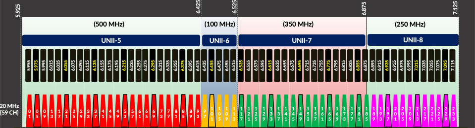 On 23-Feb-2024, the FCC approved Standard Power (SP) operation in the USA (DA-24-166A1), completing all three modes of operations in the country. Back in 2020, LPI – Low Power Indoor was approved (FCC-20-51A1), and in late 2023, VLP – Very Low Power operation was also approved (FCC-23-86A1). When it comes to the rest of the world, mostly LPI and VLP are allowed in the UNII-5 band (500MHz of spectrum).