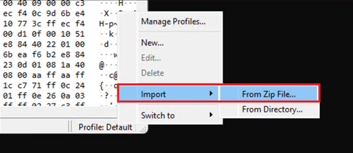 Simply download the profile, then ‘right-click‘ on the Profile section and select ‘Import → From Zip File‘, as shown in the image below.