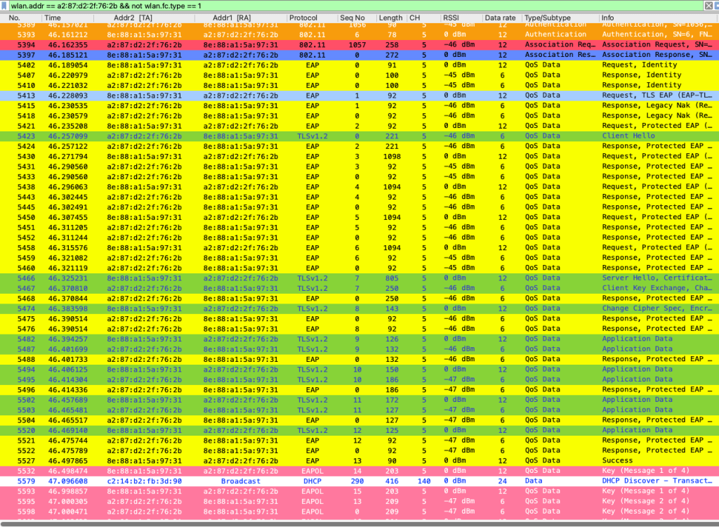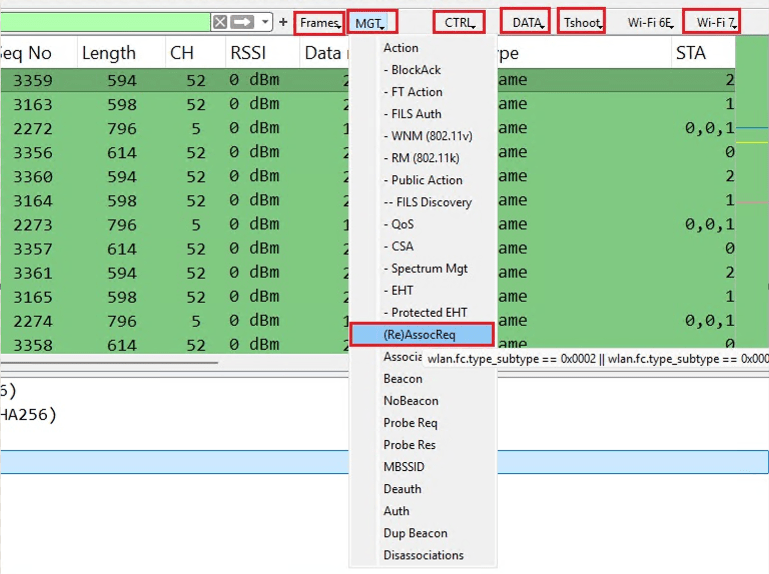 I’ve created a few display filter shortcuts for Management, Control, and Data frames, as well as some Wi-Fi 7 specific filters. The basic idea is simple: get the MAC address of the client you’re troubleshooting and enter it under Frames → Client MAC. Here is a video explaining how to use my Wireshark Profile in detail.