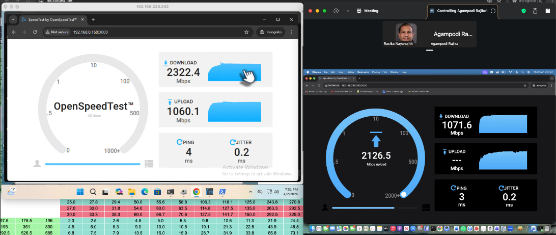 Both iPerf3 and OpenSpeedTest measured upload speeds of around 2.3 Gbps (from the UDB switch perspective). However, the download speed was unexpectedly limited to approximately 1.1 Gbps. At this stage, it’s not clear what caused this limitation—it could be related to the Windows client, the UDB switch, or another component in the setup.